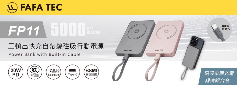 .材質:鋁合金+PC塑料+電子元件 .電池容量:5000mAh/3.85Vdc/19.25Wh .功率:20W .額定容量:5V/3000mAh,9V/1600mAh,12V/ 1200mAh .輸入電壓/電流:Type C: 5V⎓3A 自帶Type C線:5V⎓3A .輸出電壓/電流:自帶Type C線: 5V⎓3A、9V⎓2.22A、12V⎓1.67A (20W Max) Type C:5V⎓3A、9V⎓2.22A、12V⎓1.67A (20W Max) 無線充電:5W、7.5W、10W、15W 多口放電: 15W Max 邊充邊放:輸入5V⎓3A, 輸出 5V⎓2.5A ◎ 自帶Type C孔僅供線材收納使用,無作用 .產品尺寸:約10x6.5x1.1c